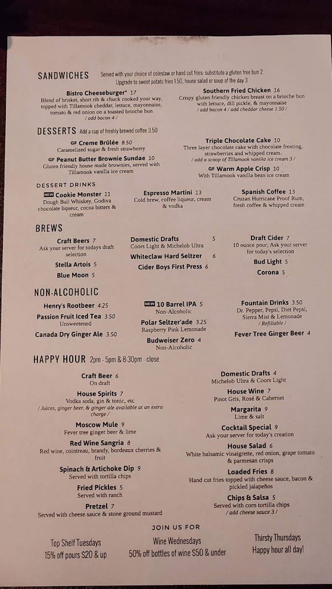 Includes soup or garden salad to start. Paired with Yukon gold mashed potatoes and vegetables. Tuesday night special only****